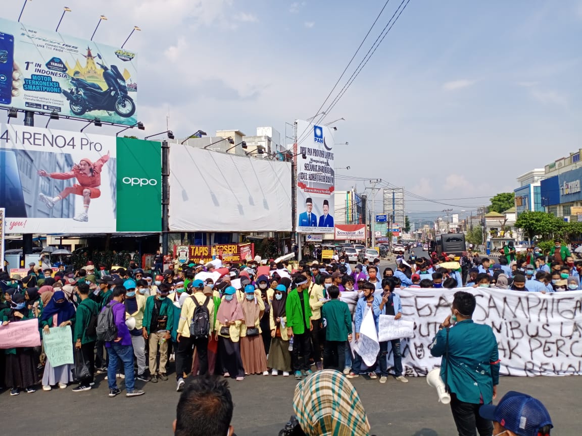 Aliansi Mahasiswa Lampung Bergerak Terus Bergerak Sampai Dicabutnya Omnibus Law. Mahasiswa bukanlah perusuh, kami menjunjung tinggi asas kemanusiaan. Pemerintah beralasan bahwa penetapan undang-undang sapu jagat ini bertujuan untuk menciptakan lapangan kerja dan meningkatkan investasi asing dan dalam negeri dengan mengurangi. [ aksi damai bem si wilayah sumbagsel x aliansi mahasiswa lampung bergerak ] .