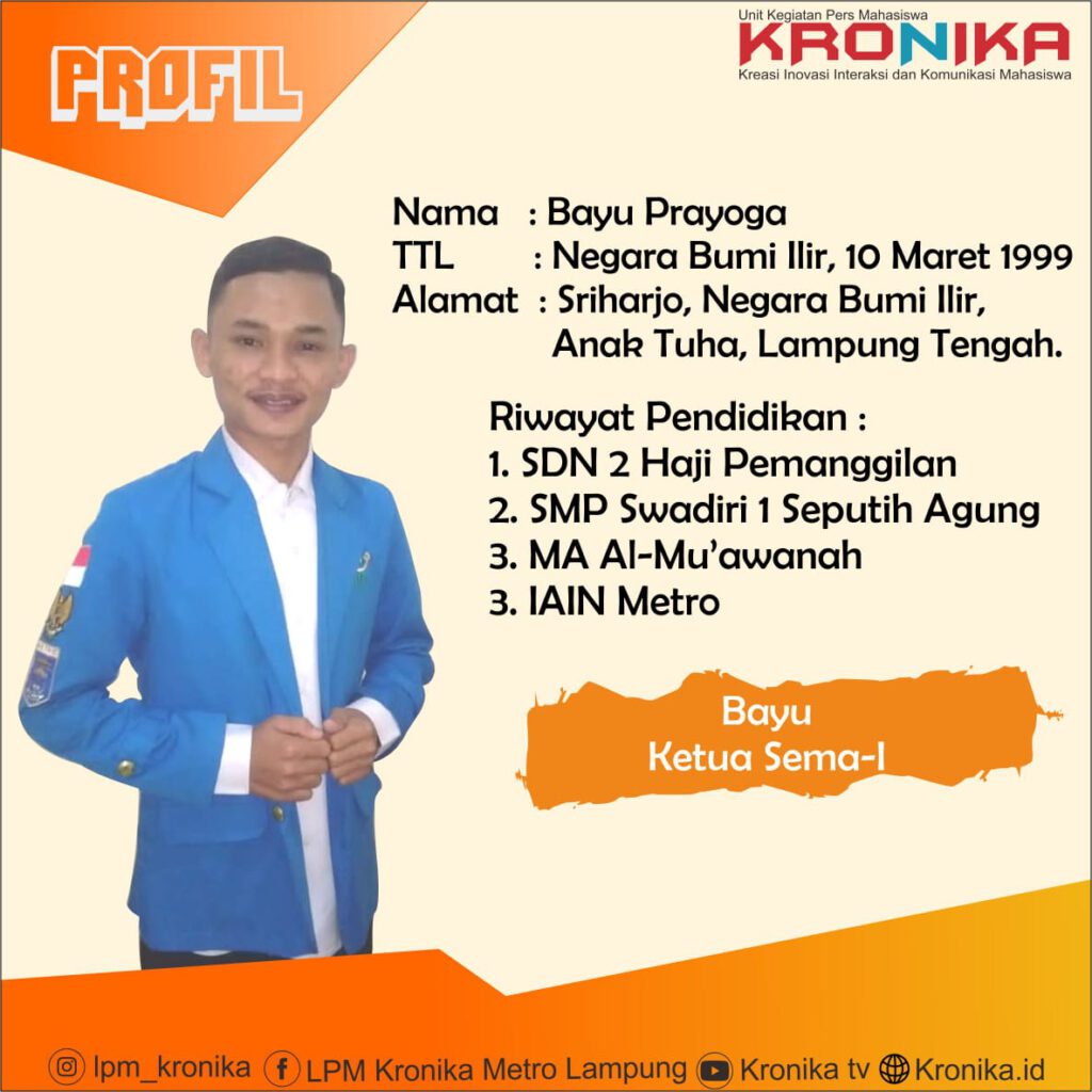 Mengenal Sosok Ketua Sema I Iain Metro 2020. Setelah terpilih ia menjadi satu diantara senator Kalbar. Seperti yang dikemukakan oleh Rektor IAIN Metro Prof.