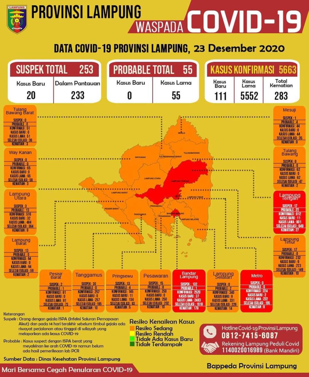 Metro Masuk Zona Merah Dengan Ditemukan 2 Kasus Baru Covid 19. Setelah bertemu dengan perwakilan warga, kegiatan kemudian dilanjutkan dengan penyemprotan cairan disinfektan pada wilayah tersebut. Dalam perkembangan terbaru yang disampaikan Divisi Perencanaan, Riset, dan Epidemiologi (PRE), Kota Depok menjadi satu-satunya wilayah yang masuk zona merah atau memiliki risiko penularan tinggi.