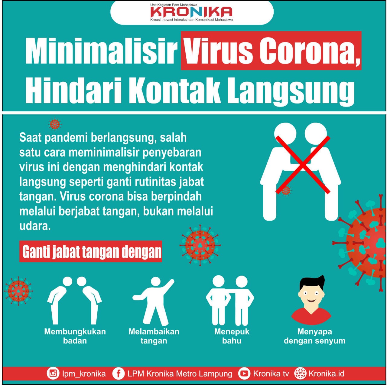 Minimalisir Virus Corona, Hindari Kontak Langsung ... (Eunice Greer) Virus corona bisa menular dengan cepat, hingga menimbulkan kematian.. Virus ini bahkan sudah menyebar hingga ke beberapa negara. Kes menyampaikan, saat ini tidak ada dugaan warga yang tinggal di Indonesia terjangkit virus Corona.