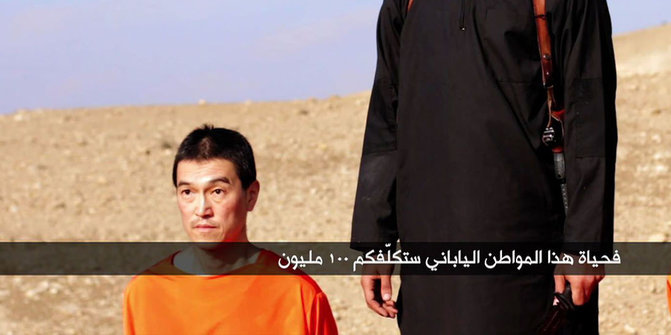 Ultimatum ISIS disampaikan melalui pesan video yang diunggah ke YouTube. Video tersebut memperlihatkan seorang lelaki berkerudung berdiri di belakang Kenji yang berlutut. Sentimen di media sosial tentang penembakan Charlie Hebdo berhasil "mengundang" jutaan orang untuk memprotes serangan teror tersebut.